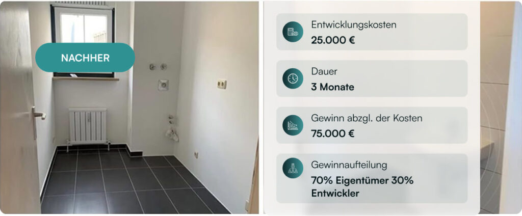 Mit gezielten Modernisierungen erhöhen wir den Wert Ihrer Immobilie, sodass Sie einen höheren Verkaufspreis erzielen – ganz ohne eigenen finanziellen Aufwand.